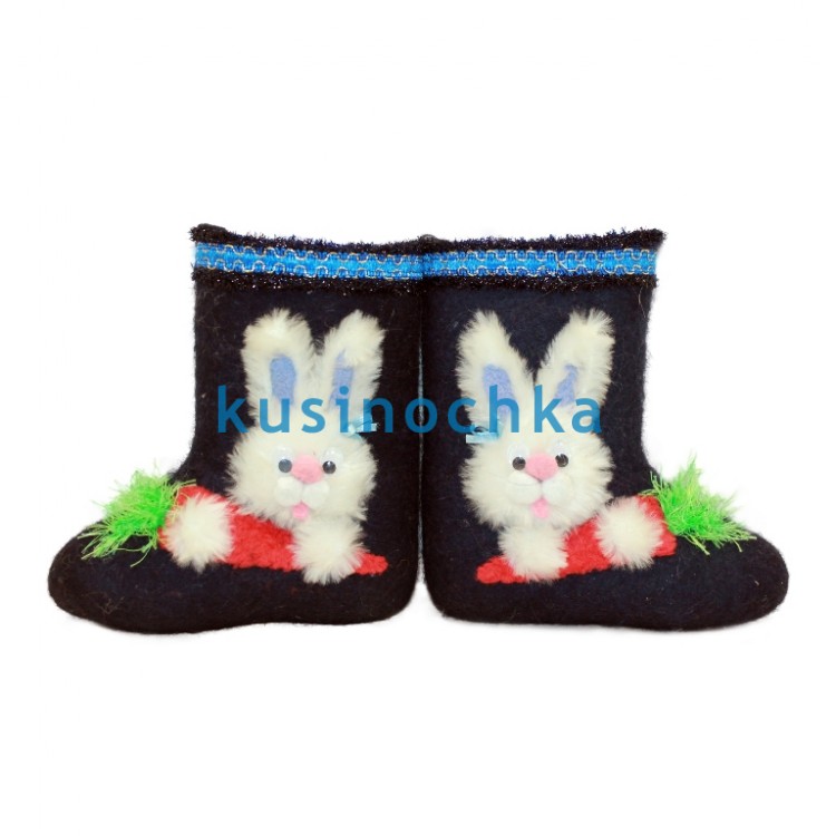 Особая модель, в которой зайчик и морковка выполнены не краской, а объёмной аппликацией из натуральной шерсти — мягкой, пушистой, приятной на ощупь. Ребёнок не только видит героя, но и гладит его — это создаёт эмоциональную связь с вещью, успокаивает, развивает тактильное восприятие. Такие валенки становятся не просто обувью, а «другом» на зимней прогулке.
